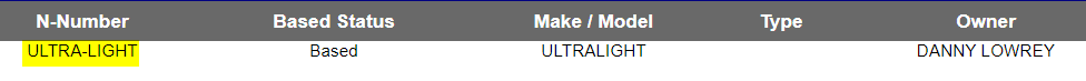 It is understood that not all types of aircraft (military, ultra-lights, balloons, etc.) have a registered N-Number. Aircraft that do not have an N-Number can be entered with place-holder text (Ultra-light, military, etc.) as an N-Number. Example below: